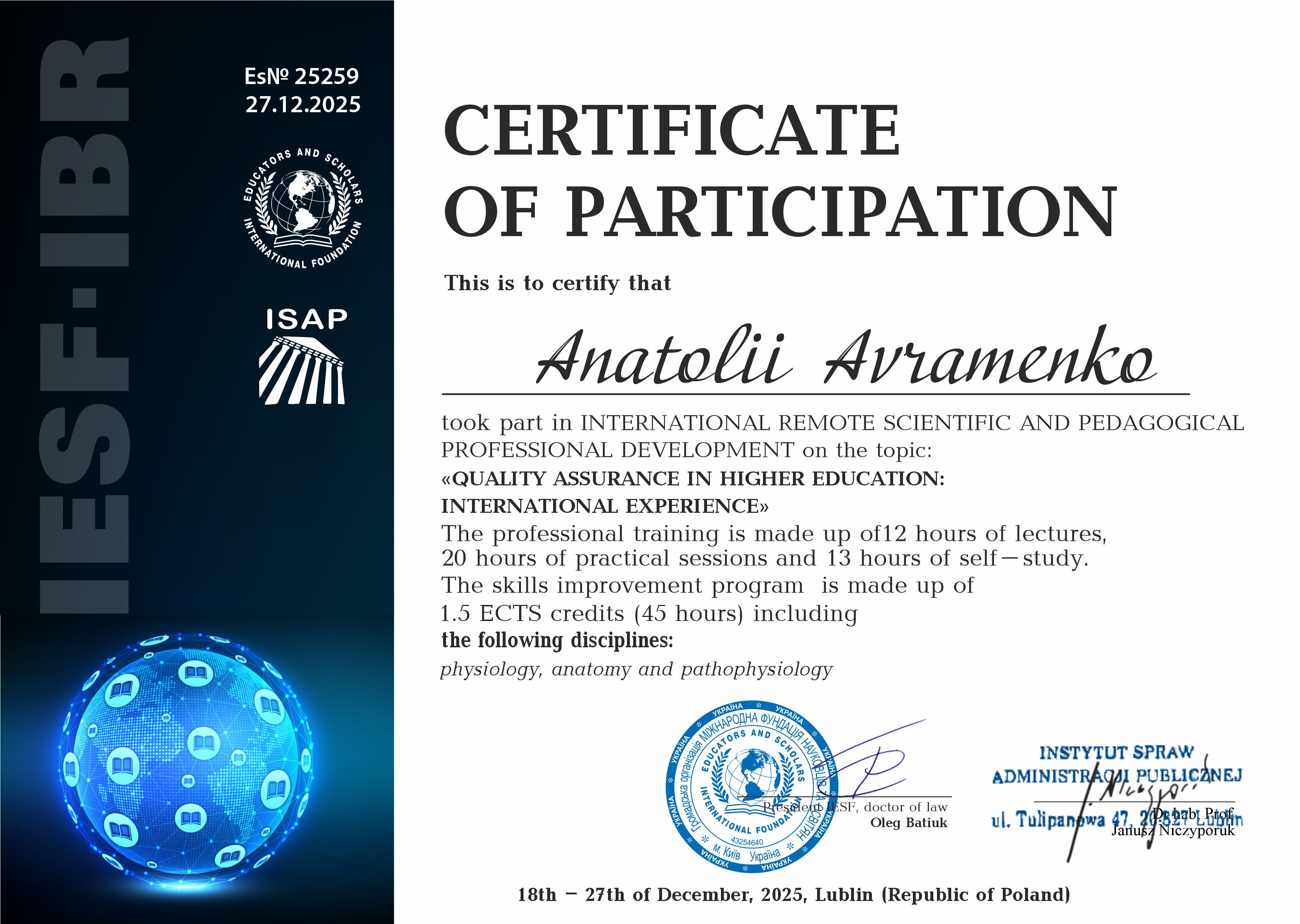 - професор кафедри охорони здоров'я Міжнародного класичного університету імені Пилипа Орлика;