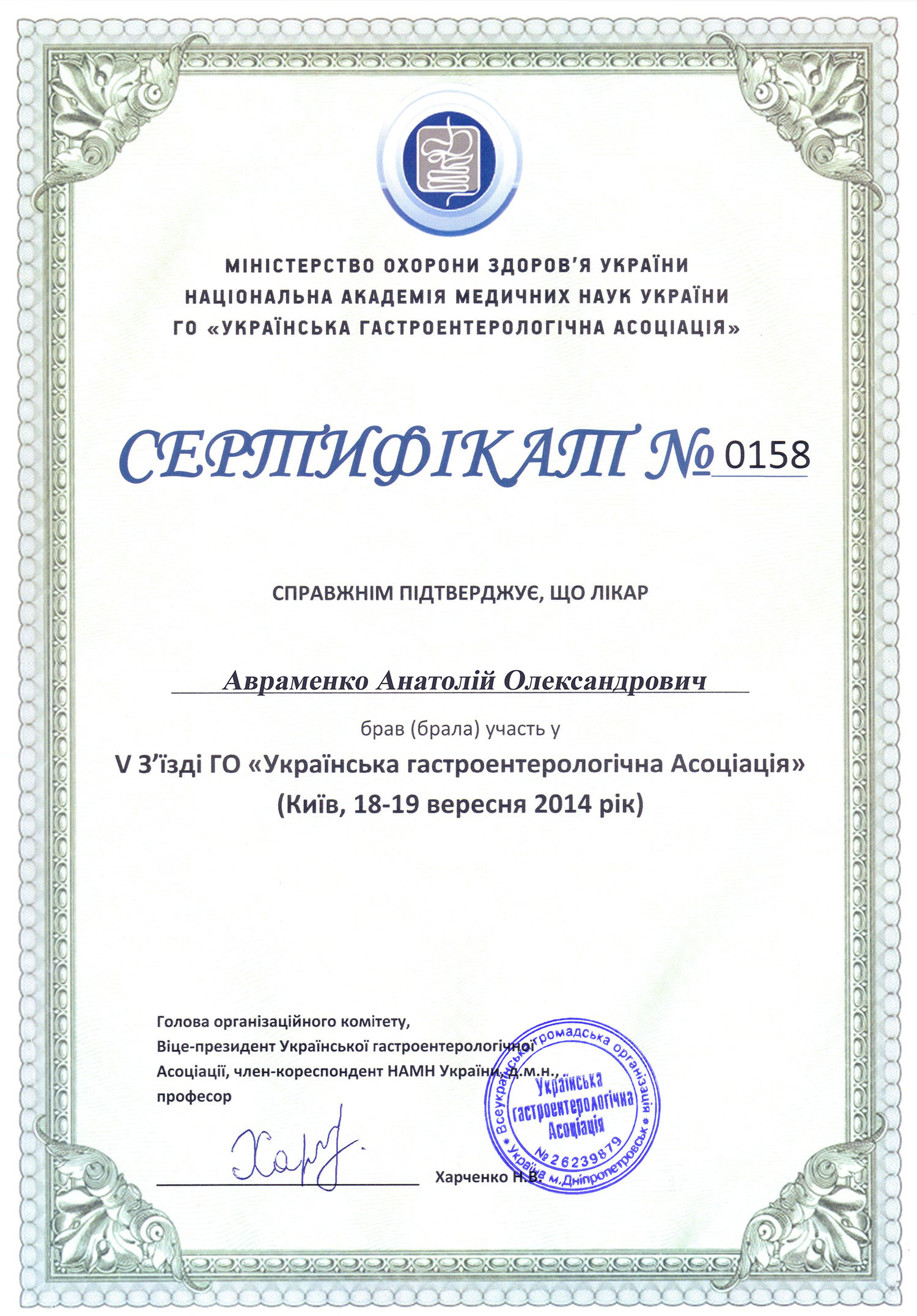 - лікар-гастроентеролог, ендоскопіст вищої категорії центру прогресивної медицини та реабілітації «Rea+Med»;