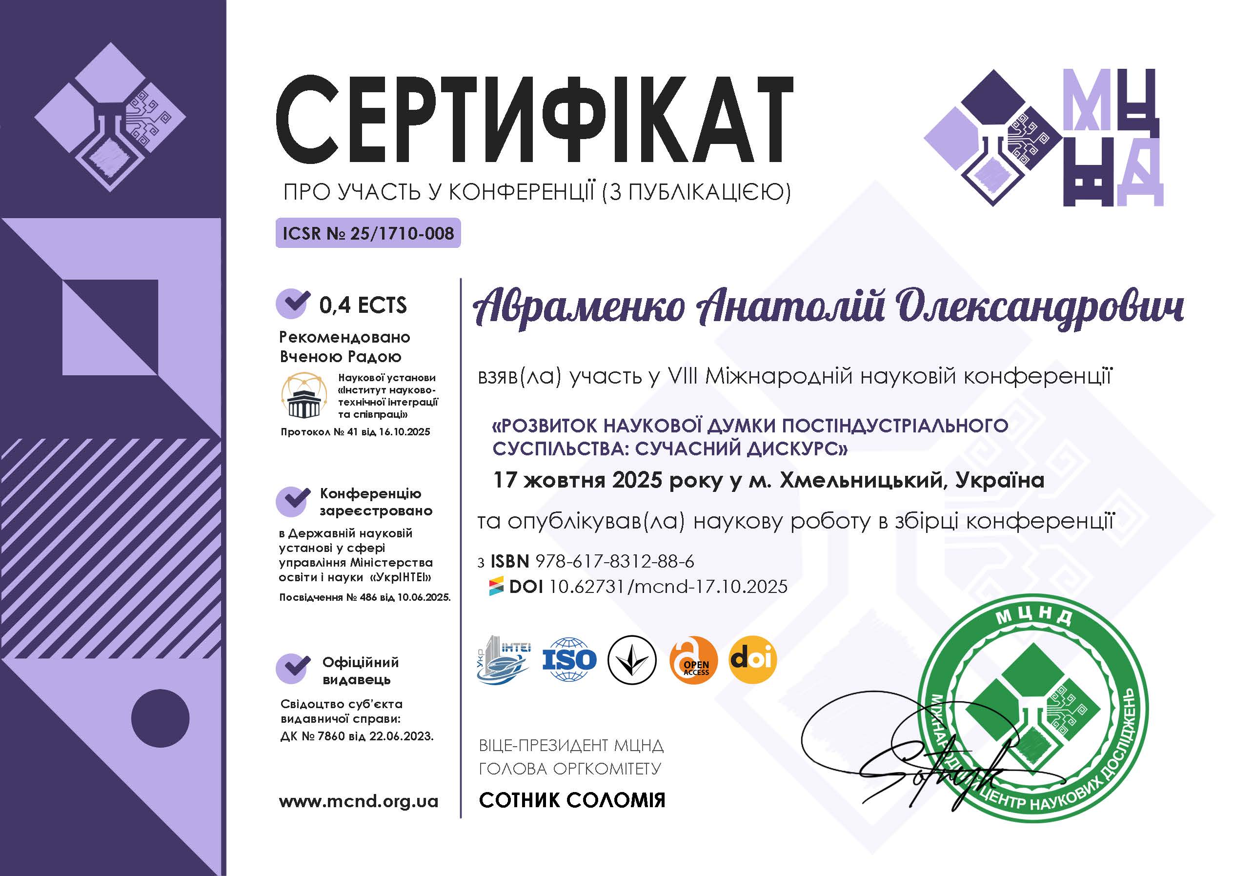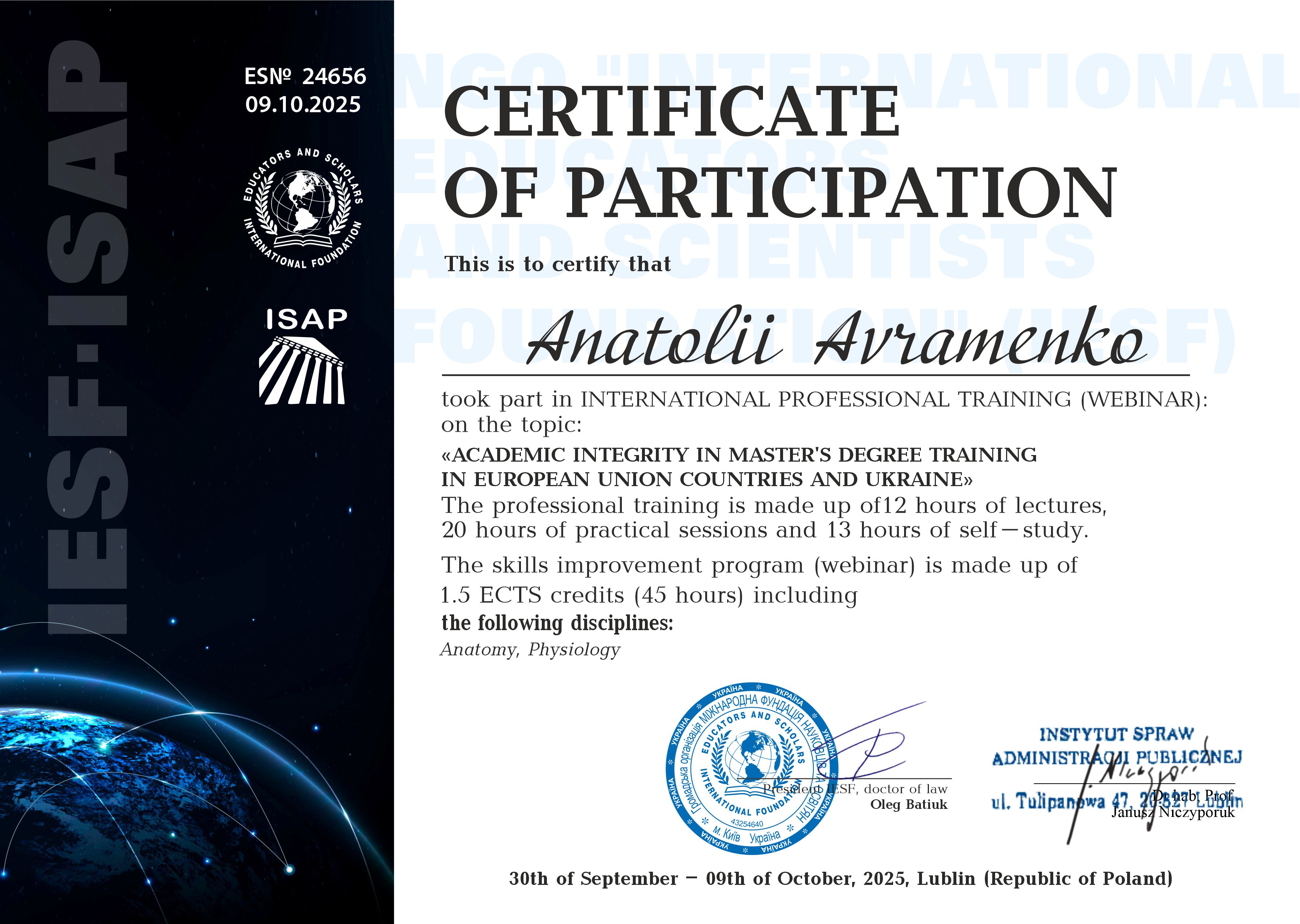 Я, Авраменко Анатолій Олександрович