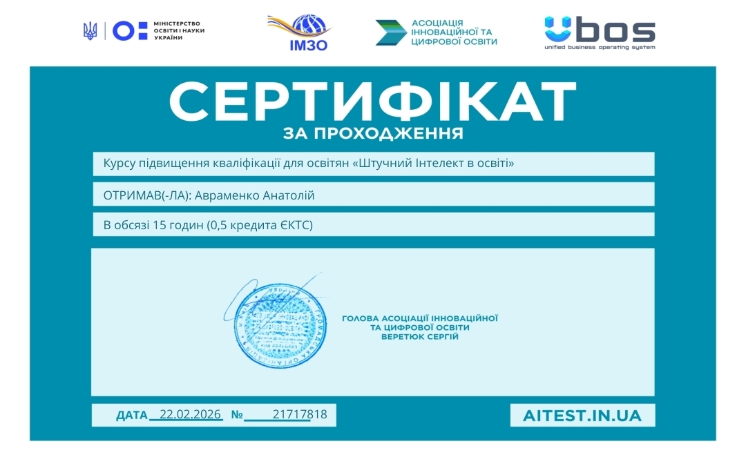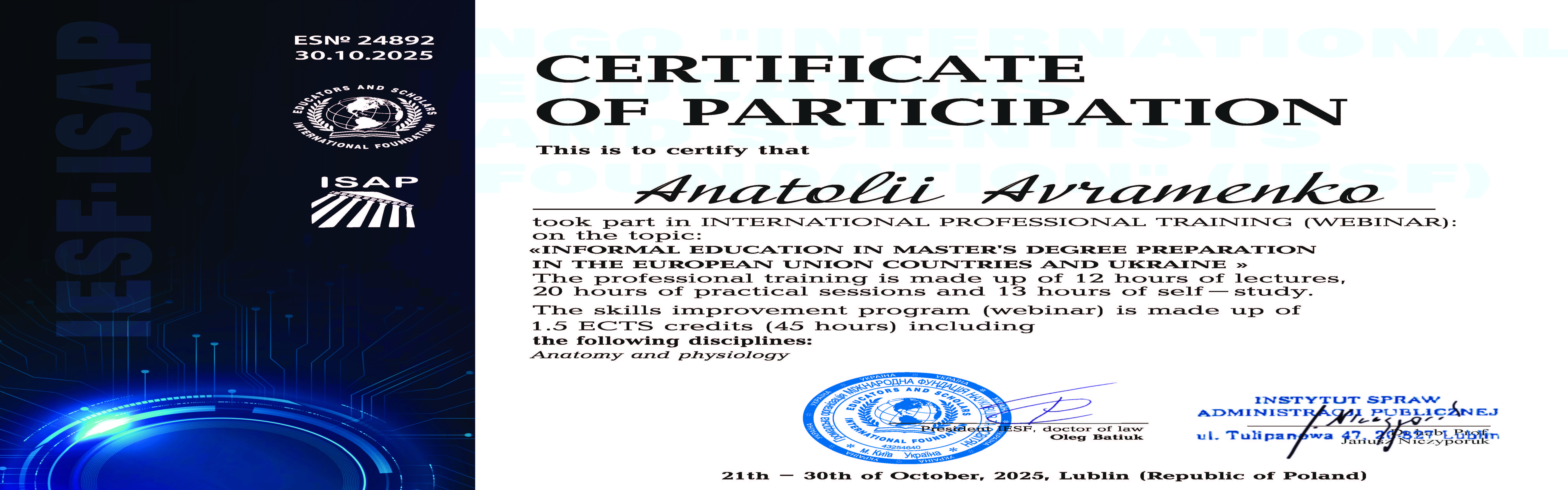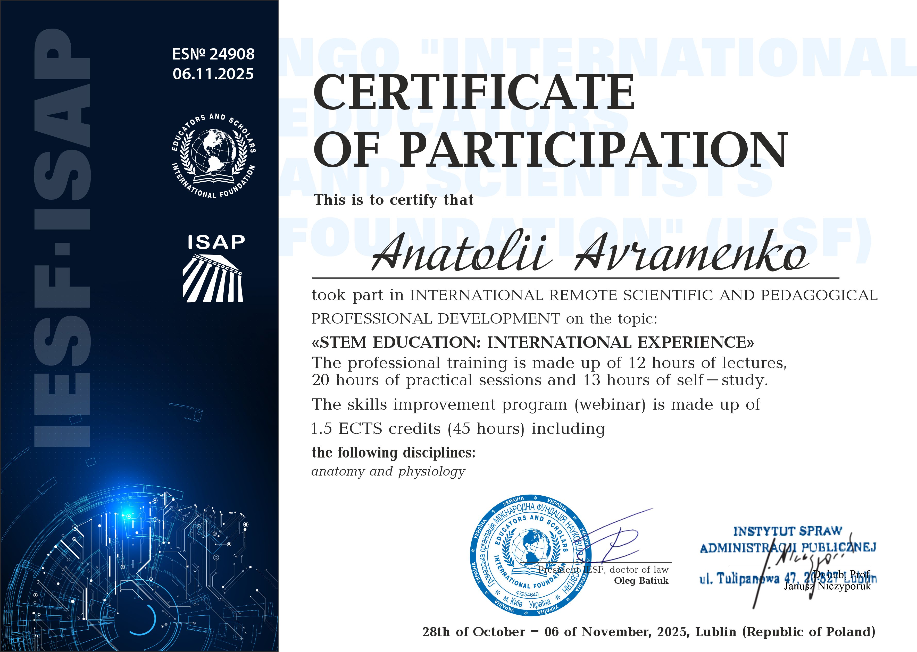 - нагороджений Почесною грамотою Міністерства освіти і науки України (2025 р.);