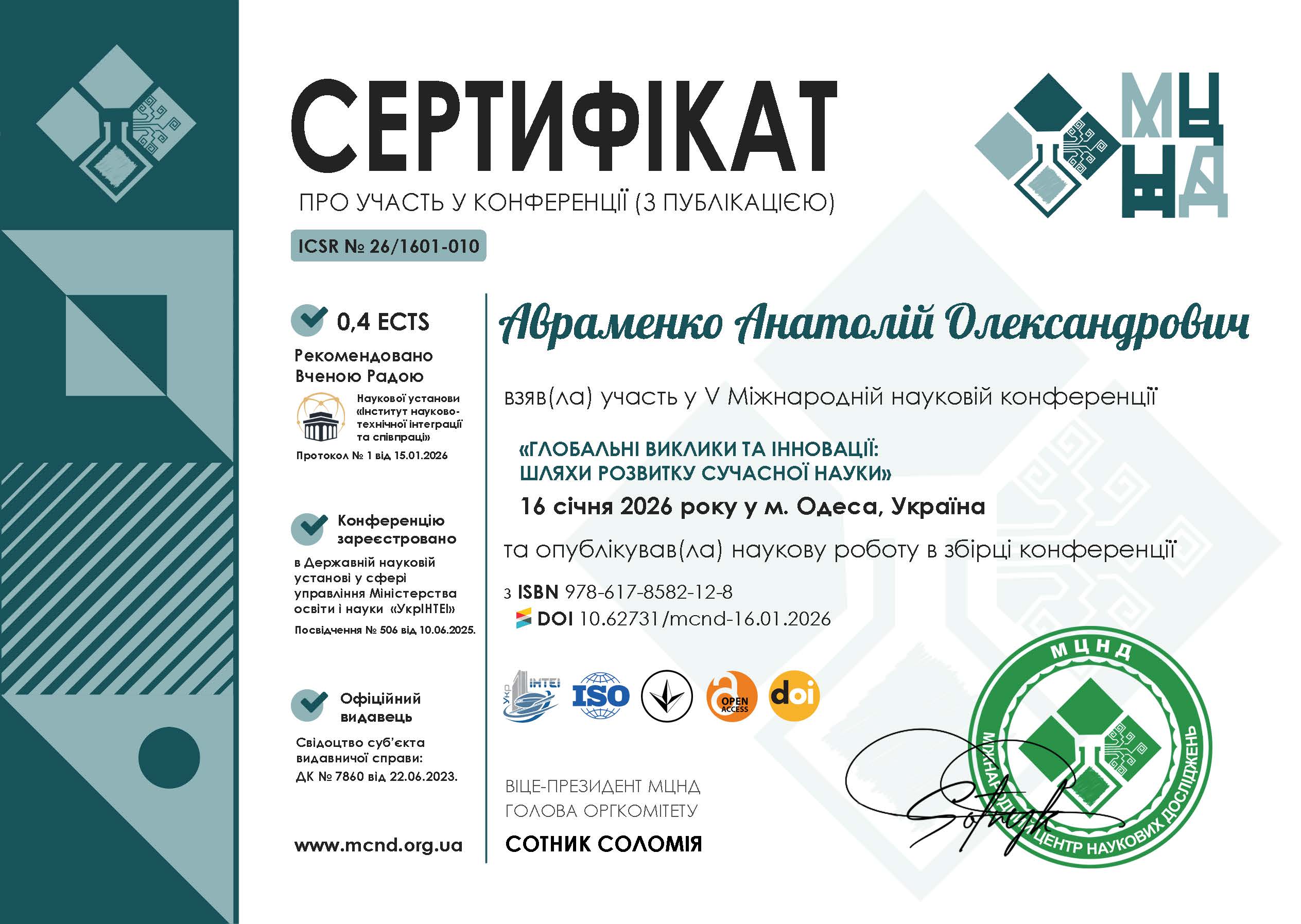 Я, Авраменко Анатолій Олександрович